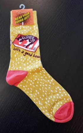 Make reading time extra-cozy in a pair of Curled Up with a Good Book socks.