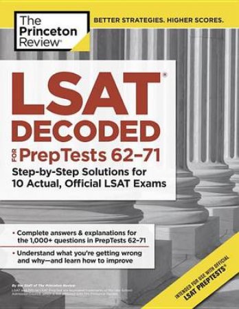 "Students taking the LSAT are fanatics about practicing with real exams, which they can buy directly from the Law School Admission Council in sets of 10. While valuable, these official test books lack one supremely important element: actual explanations to accompany the answers. And with the LSAT, the why of a correct answer is important. Enter The Princeton Review. With our new LSAT Decoded series, we're here to help students in the lurch with thorough, step-by-step explanations for each question on actual LSAT exams. This book is intended to be used as a companion to the LSAC-issued 10 Actual, Official LSAT PrepTests Volume V: PrepTests 62 through 71 (9780986045516), which contains real tests administered from September 2007 to October 2010. LSAT Decoded also features an introductory section with essential test-conquering tips and strategies."